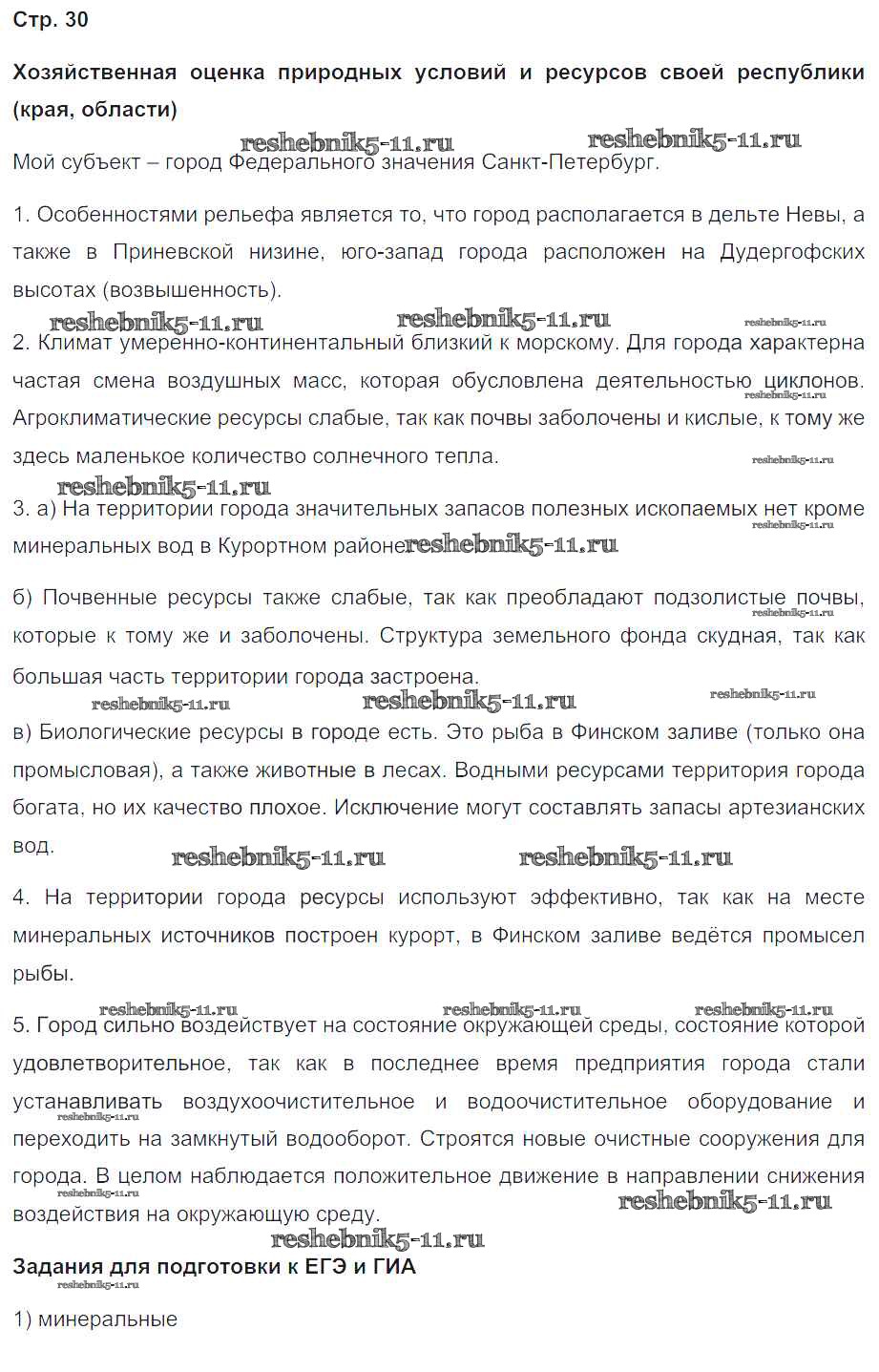 Готовая домашняя работа с ответами по Географии за 9 класс Сиротин Рабочая тетрадь с контурными картами Дрофа 2020 ФГОС - Страницы 30