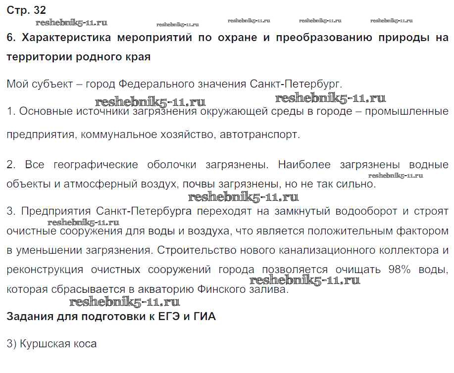 Готовая домашняя работа с ответами по Географии за 9 класс Сиротин Рабочая тетрадь с контурными картами Дрофа 2020 ФГОС - Страницы 32