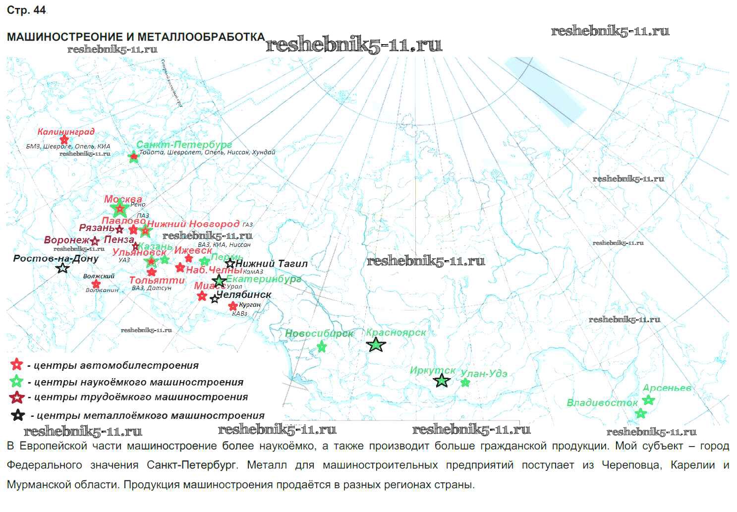 Готовая домашняя работа с ответами по Географии за 9 класс Сиротин Рабочая тетрадь с контурными картами Дрофа 2020 ФГОС - Страницы 44