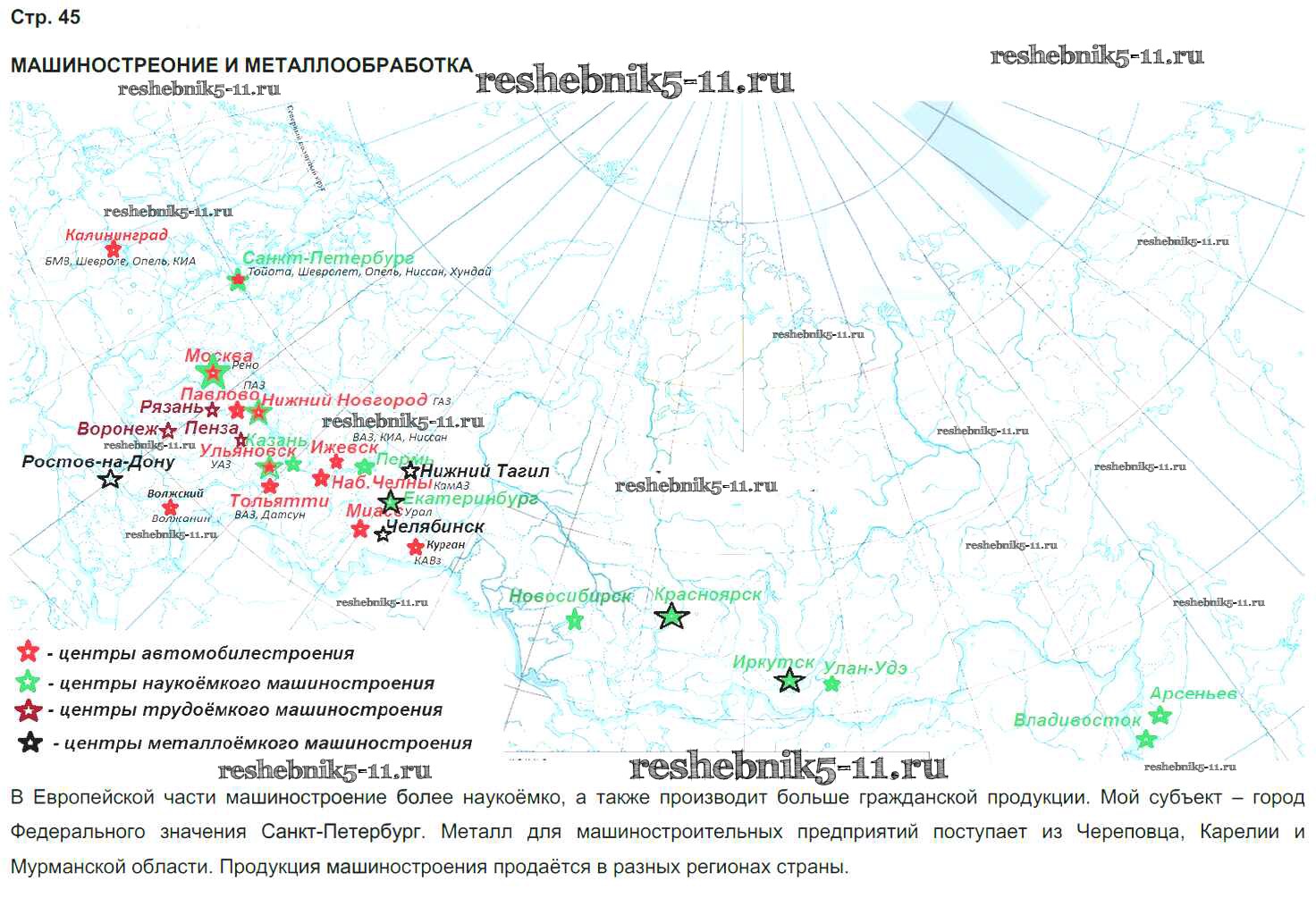Готовая домашняя работа с ответами по Географии за 9 класс Сиротин Рабочая тетрадь с контурными картами Дрофа 2020 ФГОС - Страницы 45