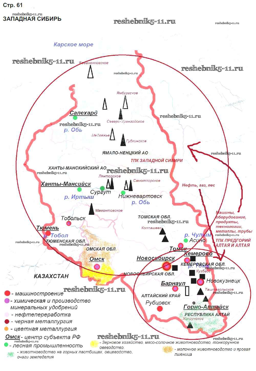 Готовая домашняя работа с ответами по Географии за 9 класс Сиротин Рабочая тетрадь с контурными картами Дрофа 2020 ФГОС - Страницы 61