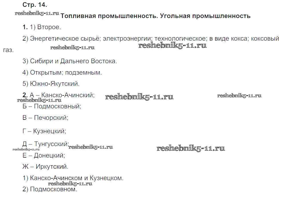 Готовая домашняя работа с ответами по Географии за 9 класс Таможняя, Толкунова Рабочая тетрадь Алгоритм успеха Вентана-граф 2017 ФГОС - Часть 1. Страницы 14