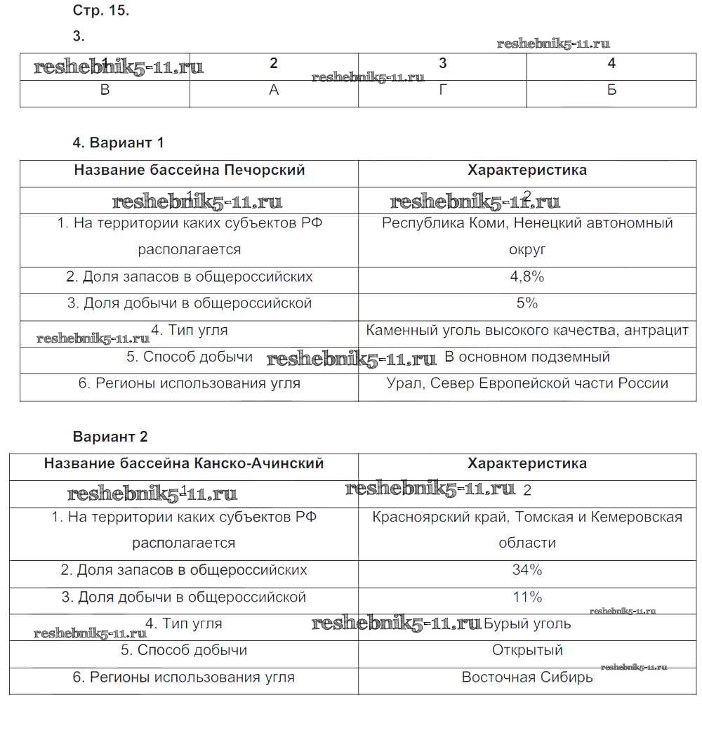 Готовая домашняя работа с ответами по Географии за 9 класс Таможняя, Толкунова Рабочая тетрадь Алгоритм успеха Вентана-граф 2017 ФГОС - Часть 1. Страницы 15
