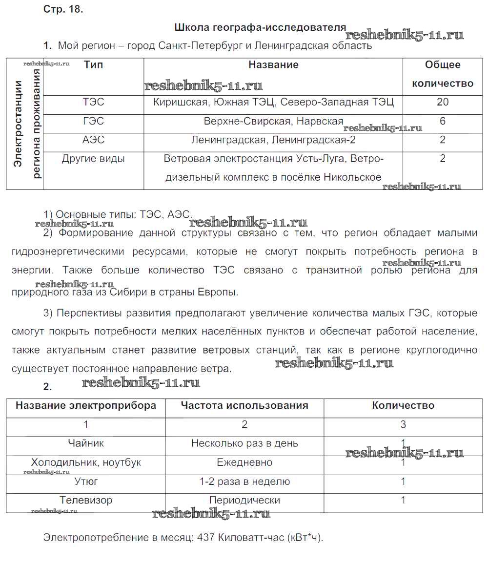 Готовая домашняя работа с ответами по Географии за 9 класс Таможняя, Толкунова Рабочая тетрадь Алгоритм успеха Вентана-граф 2017 ФГОС - Часть 1. Страницы 18