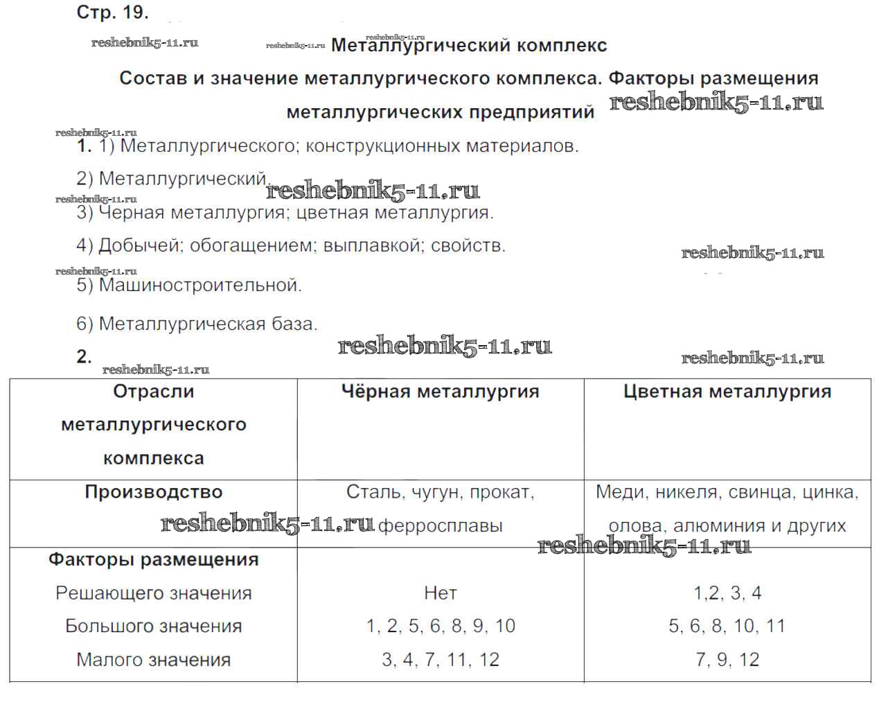 Готовая домашняя работа с ответами по Географии за 9 класс Таможняя, Толкунова Рабочая тетрадь Алгоритм успеха Вентана-граф 2017 ФГОС - Часть 1. Страницы 19