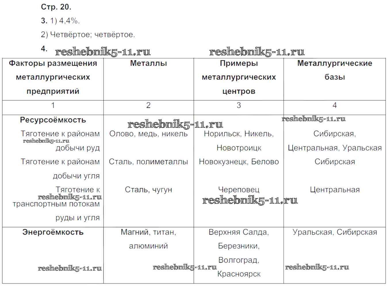 Готовая домашняя работа с ответами по Географии за 9 класс Таможняя, Толкунова Рабочая тетрадь Алгоритм успеха Вентана-граф 2017 ФГОС - Часть 1. Страницы 20