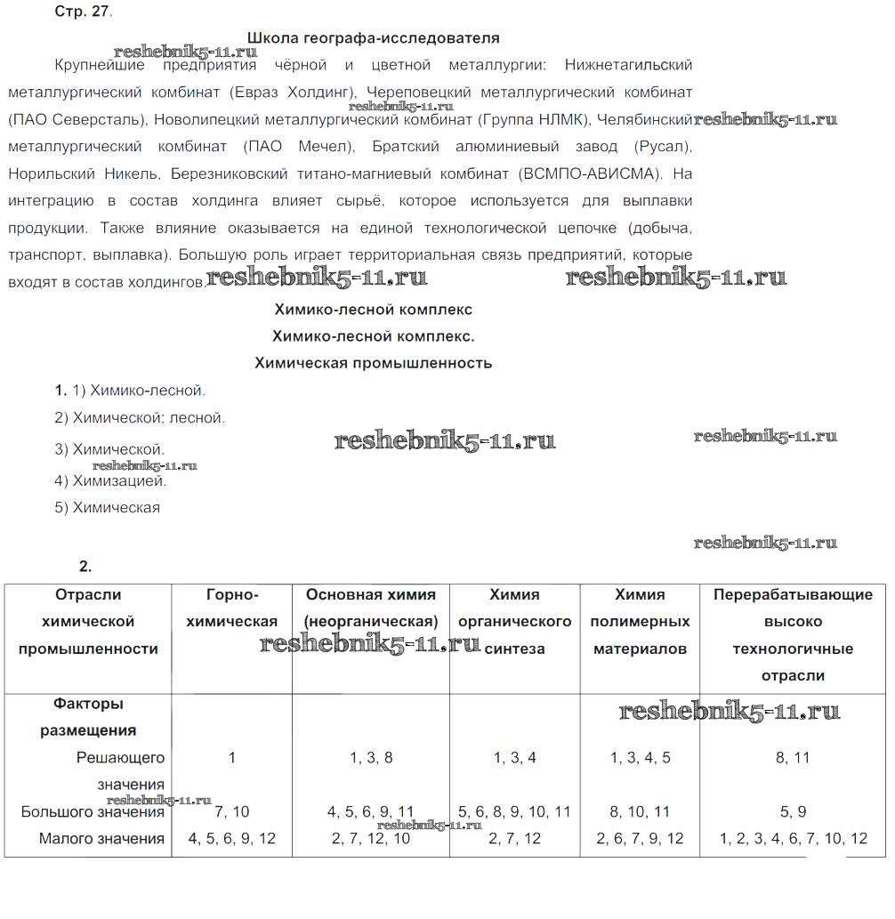 Готовая домашняя работа с ответами по Географии за 9 класс Таможняя, Толкунова Рабочая тетрадь Алгоритм успеха Вентана-граф 2017 ФГОС - Часть 1. Страницы 27