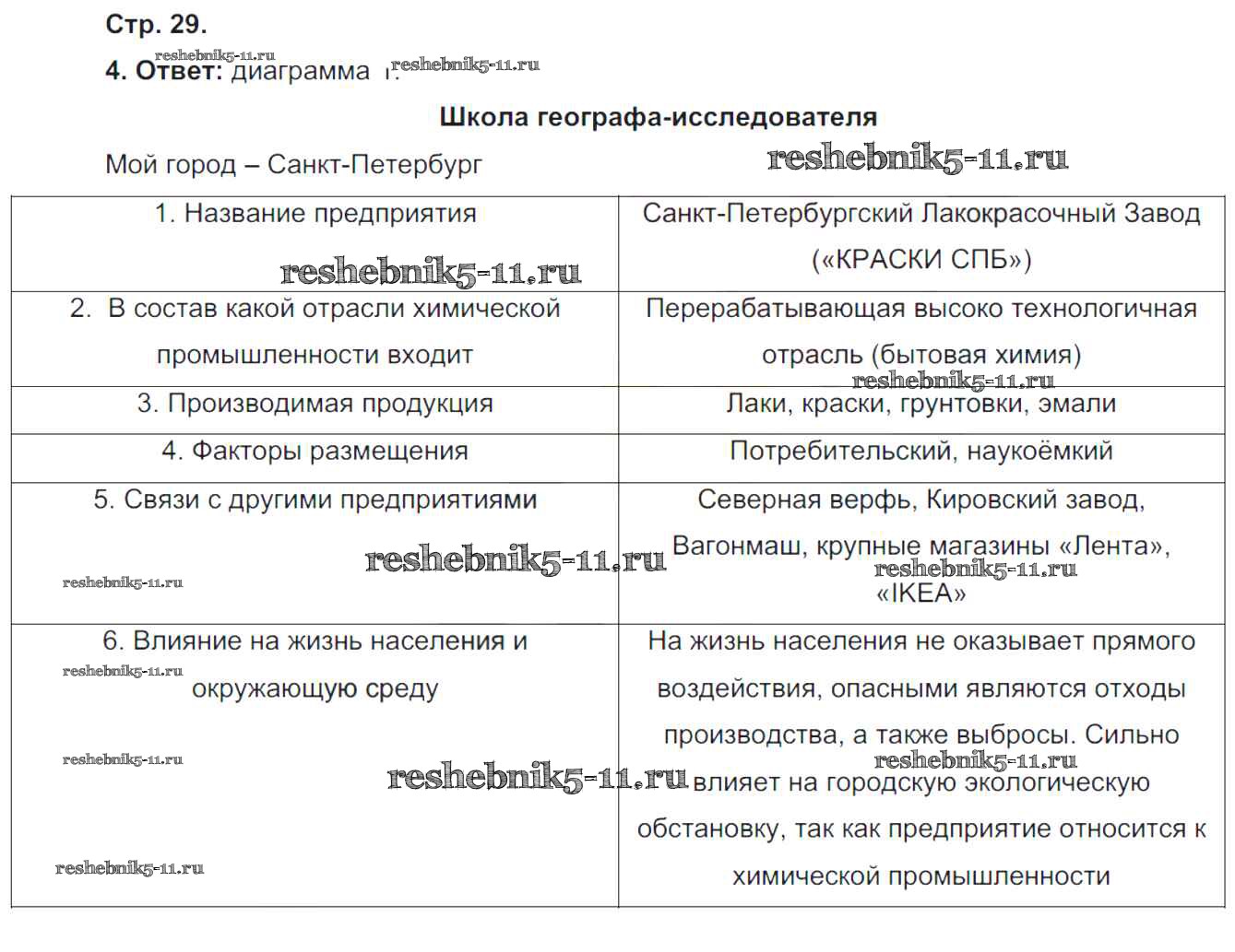 Готовая домашняя работа с ответами по Географии за 9 класс Таможняя, Толкунова Рабочая тетрадь Алгоритм успеха Вентана-граф 2017 ФГОС - Часть 1. Страницы 29