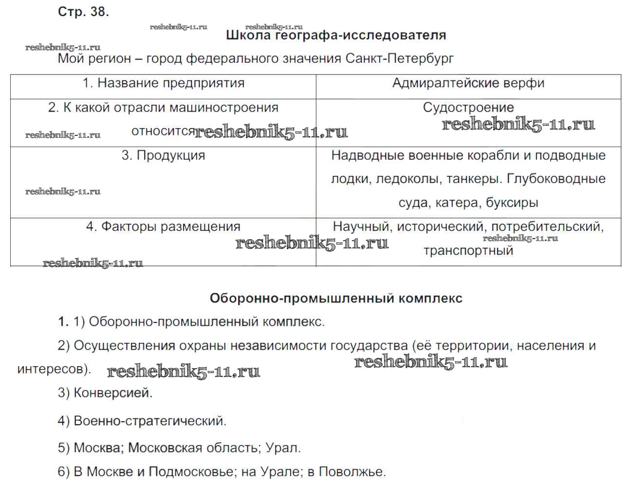 Готовая домашняя работа с ответами по Географии за 9 класс Таможняя, Толкунова Рабочая тетрадь Алгоритм успеха Вентана-граф 2017 ФГОС - Часть 1. Страницы 38