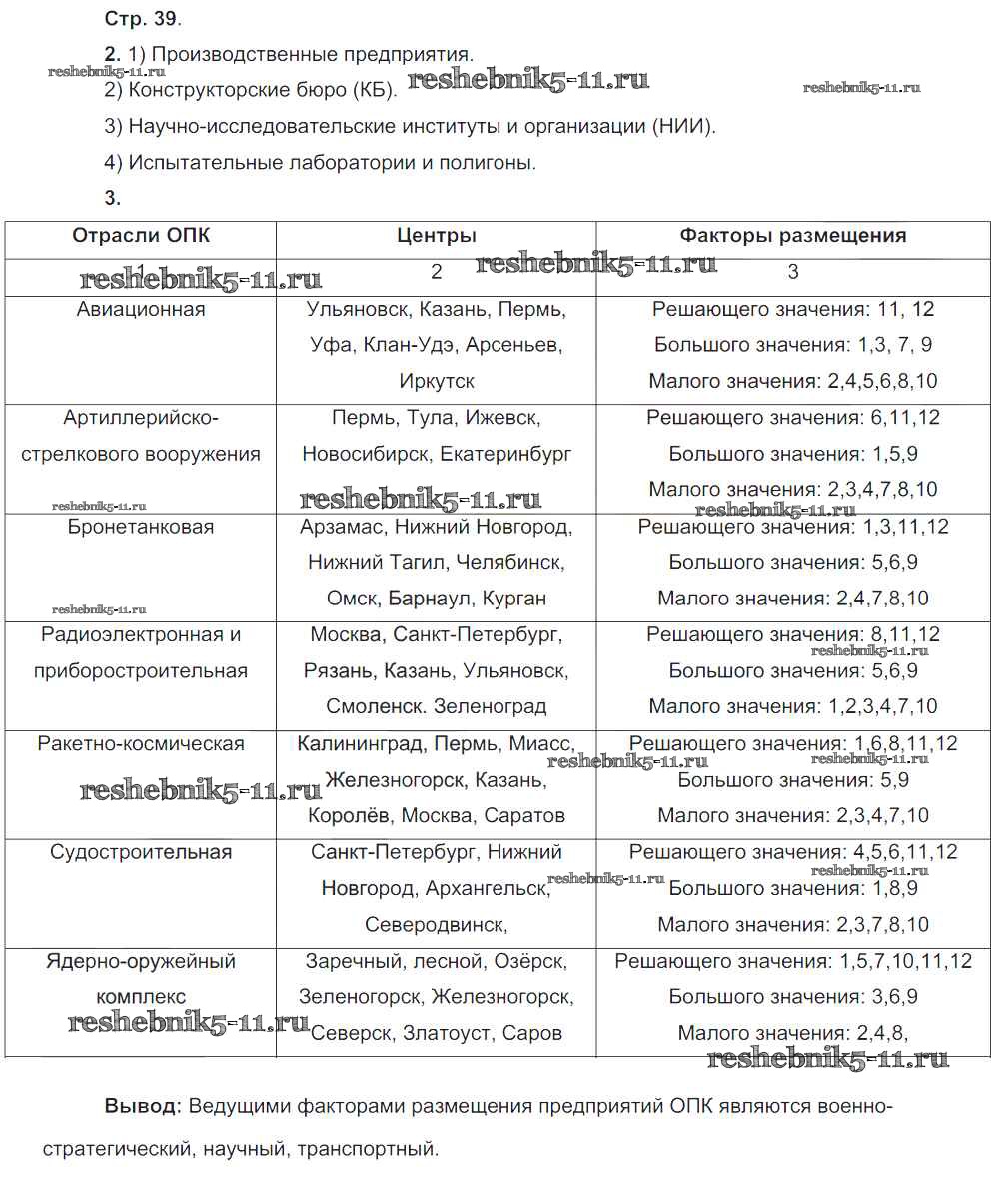 Готовая домашняя работа с ответами по Географии за 9 класс Таможняя, Толкунова Рабочая тетрадь Алгоритм успеха Вентана-граф 2017 ФГОС - Часть 1. Страницы 39