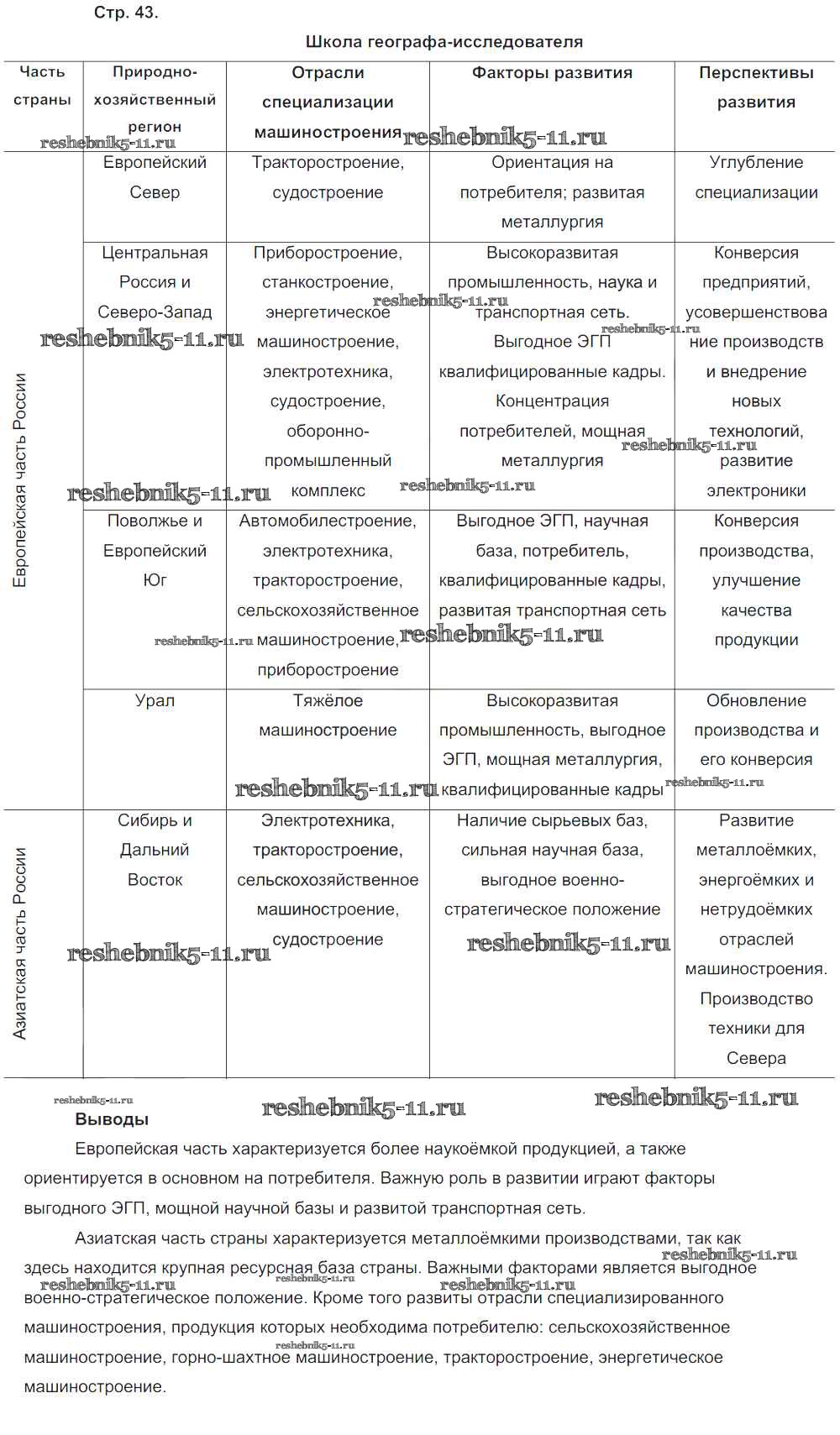 Готовая домашняя работа с ответами по Географии за 9 класс Таможняя, Толкунова Рабочая тетрадь Алгоритм успеха Вентана-граф 2017 ФГОС - Часть 1. Страницы 43