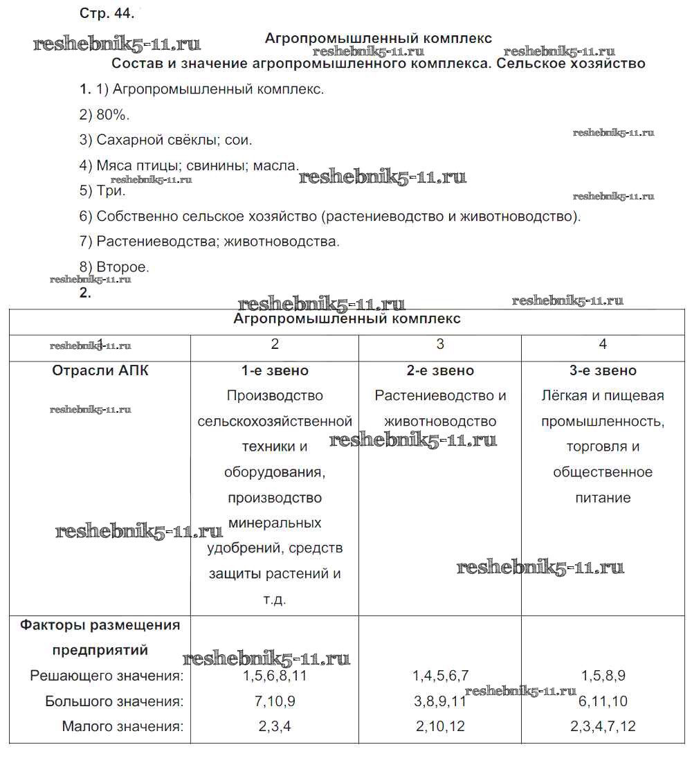 Готовая домашняя работа с ответами по Географии за 9 класс Таможняя, Толкунова Рабочая тетрадь Алгоритм успеха Вентана-граф 2017 ФГОС - Часть 1. Страницы 44