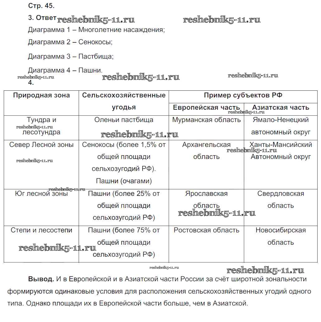 Готовая домашняя работа с ответами по Географии за 9 класс Таможняя, Толкунова Рабочая тетрадь Алгоритм успеха Вентана-граф 2017 ФГОС - Часть 1. Страницы 45