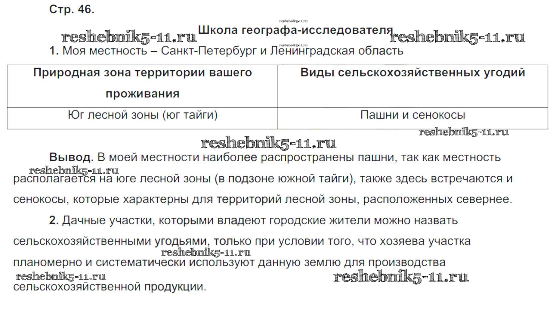 Готовая домашняя работа с ответами по Географии за 9 класс Таможняя, Толкунова Рабочая тетрадь Алгоритм успеха Вентана-граф 2017 ФГОС - Часть 1. Страницы 46