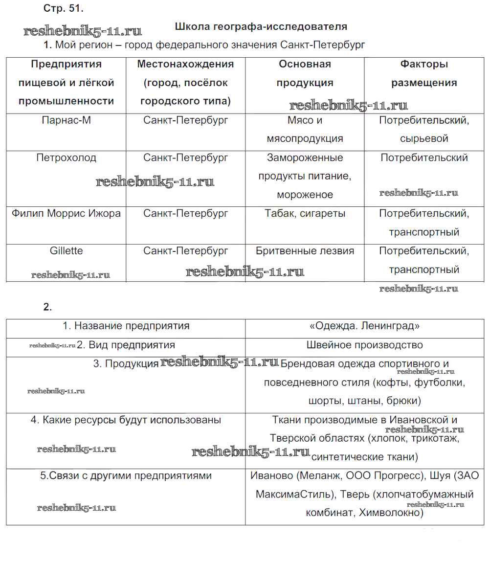 Готовая домашняя работа с ответами по Географии за 9 класс Таможняя, Толкунова Рабочая тетрадь Алгоритм успеха Вентана-граф 2017 ФГОС - Часть 1. Страницы 51