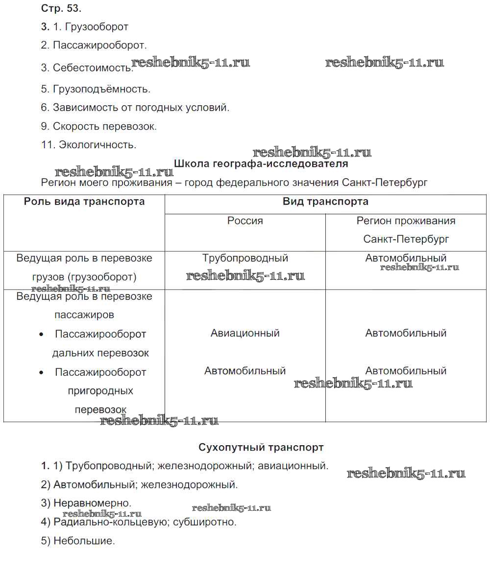 Готовая домашняя работа с ответами по Географии за 9 класс Таможняя, Толкунова Рабочая тетрадь Алгоритм успеха Вентана-граф 2017 ФГОС - Часть 1. Страницы 53