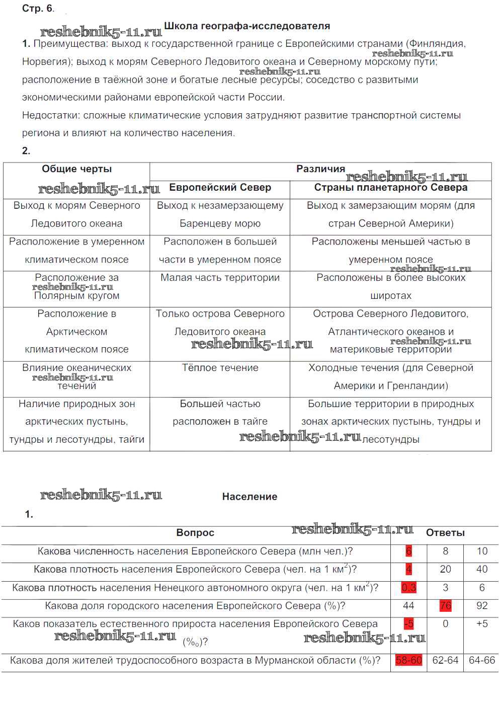 Готовая домашняя работа с ответами по Географии за 9 класс Таможняя, Толкунова Рабочая тетрадь Алгоритм успеха Вентана-граф 2017 ФГОС - Часть 1. Страницы 6