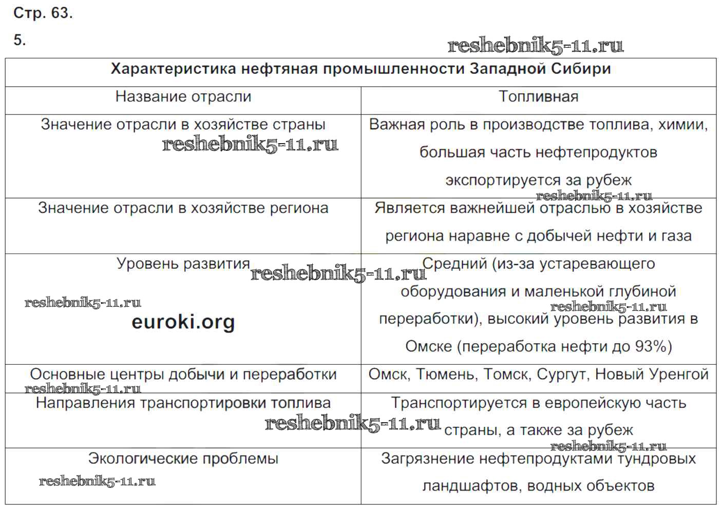Готовая домашняя работа с ответами по Географии за 9 класс Таможняя, Толкунова Рабочая тетрадь Алгоритм успеха Вентана-граф 2017 ФГОС - Часть 1. Страницы 63
