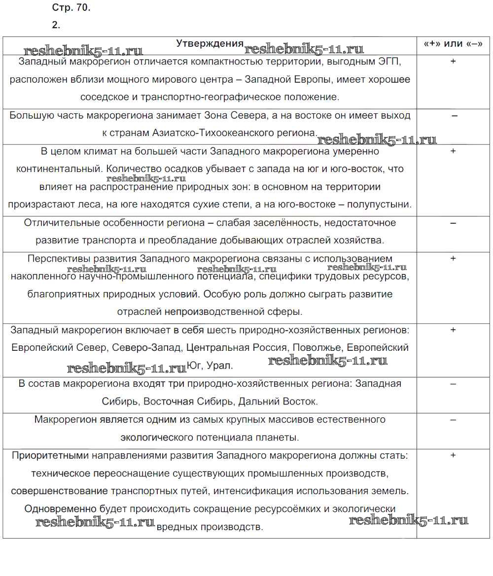 Готовая домашняя работа с ответами по Географии за 9 класс Таможняя, Толкунова Рабочая тетрадь Алгоритм успеха Вентана-граф 2017 ФГОС - Часть 1. Страницы 70