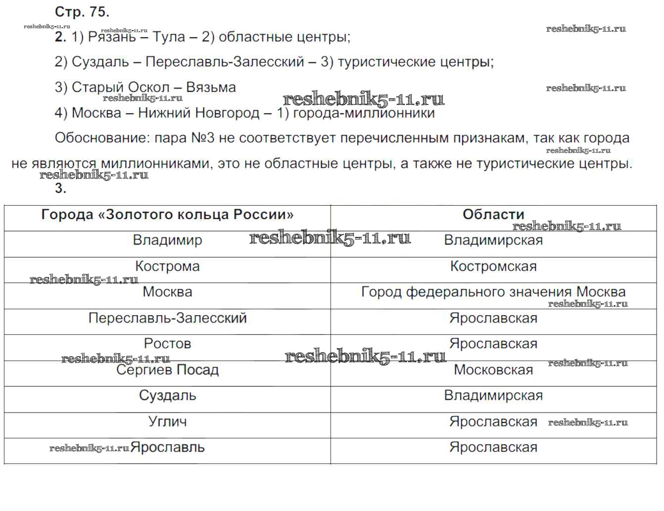 Готовая домашняя работа с ответами по Географии за 9 класс Таможняя, Толкунова Рабочая тетрадь Алгоритм успеха Вентана-граф 2017 ФГОС - Часть 1. Страницы 75