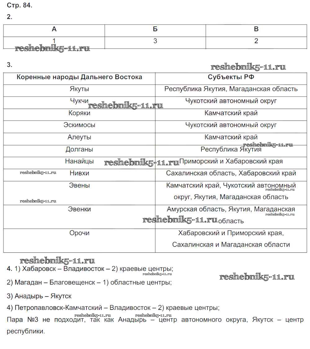 Готовая домашняя работа с ответами по Географии за 9 класс Таможняя, Толкунова Рабочая тетрадь Алгоритм успеха Вентана-граф 2017 ФГОС - Часть 1. Страницы 84