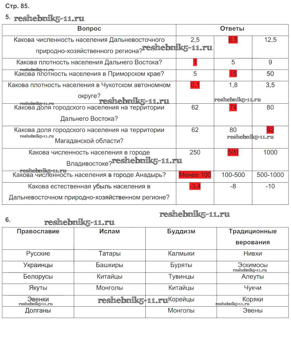 Готовая домашняя работа с ответами по Географии за 9 класс Таможняя, Толкунова Рабочая тетрадь Алгоритм успеха Вентана-граф 2017 ФГОС - Часть 1. Страницы 85