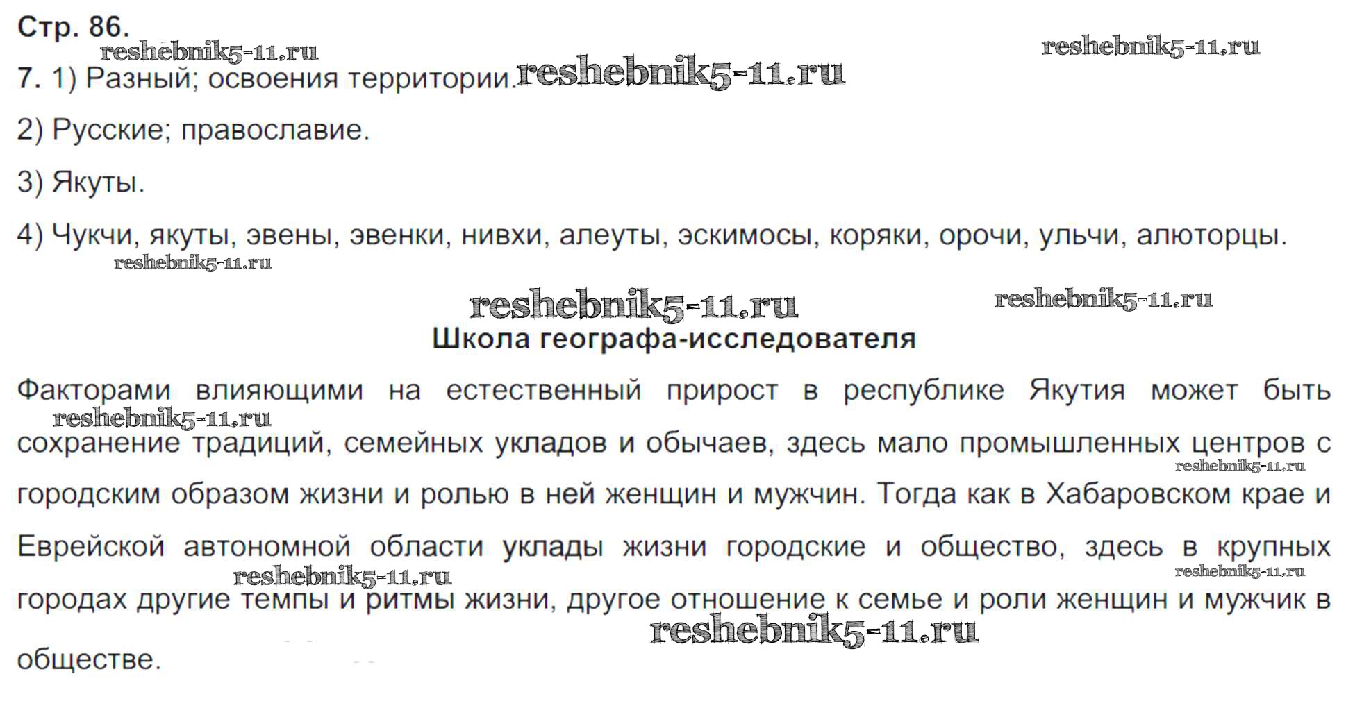 Готовая домашняя работа с ответами по Географии за 9 класс Таможняя, Толкунова Рабочая тетрадь Алгоритм успеха Вентана-граф 2017 ФГОС - Часть 1. Страницы 86