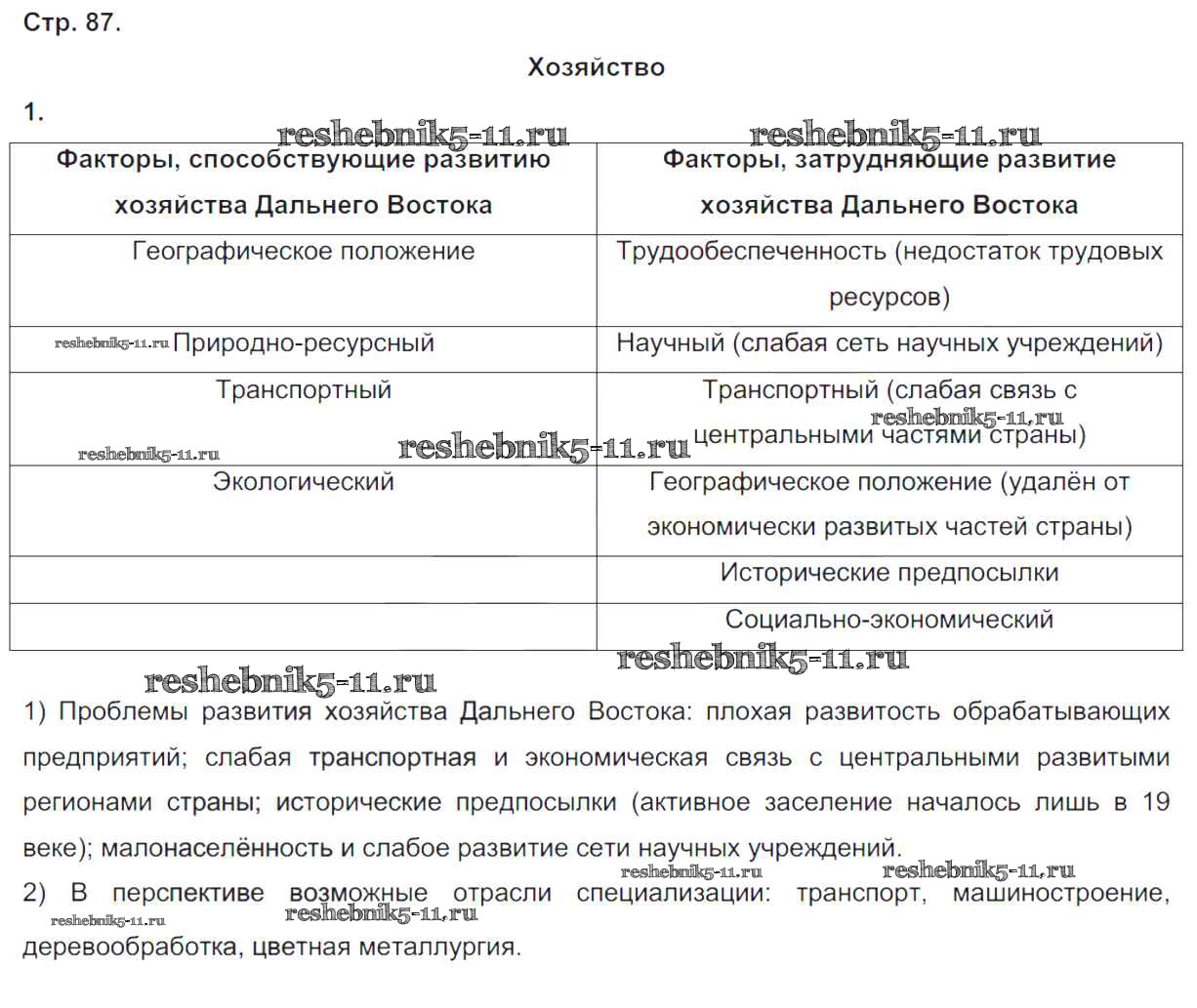 Готовая домашняя работа с ответами по Географии за 9 класс Таможняя, Толкунова Рабочая тетрадь Алгоритм успеха Вентана-граф 2017 ФГОС - Часть 1. Страницы 87