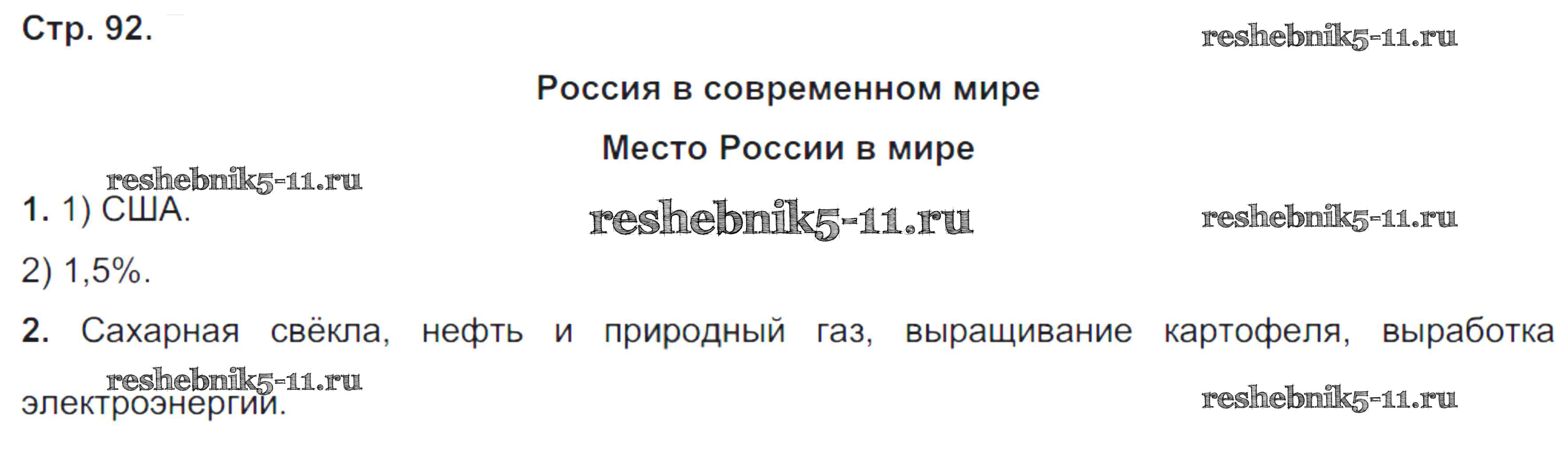 Готовая домашняя работа с ответами по Географии за 9 класс Таможняя, Толкунова Рабочая тетрадь Алгоритм успеха Вентана-граф 2017 ФГОС - Часть 1. Страницы 92