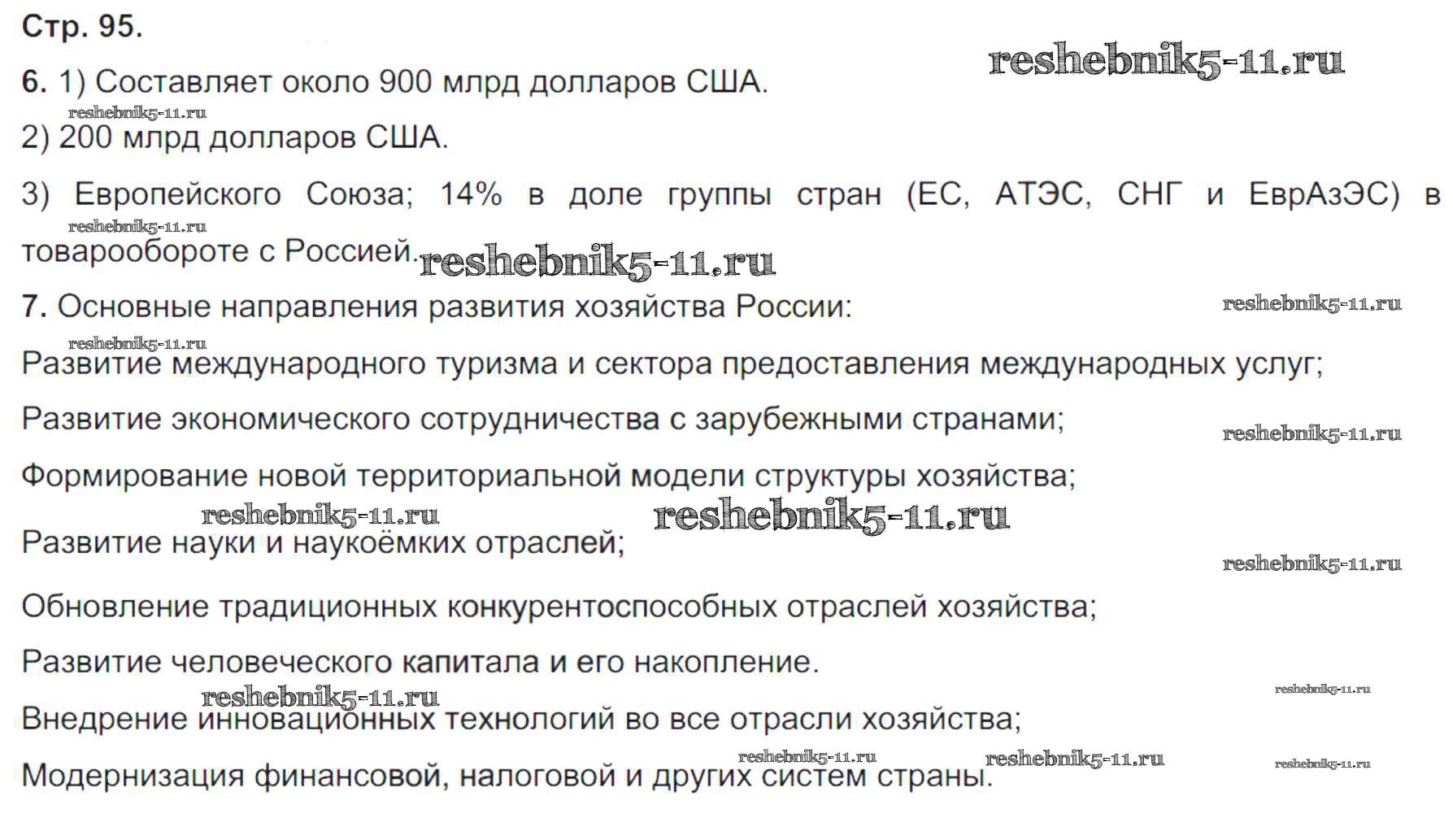 Готовая домашняя работа с ответами по Географии за 9 класс Таможняя, Толкунова Рабочая тетрадь Алгоритм успеха Вентана-граф 2017 ФГОС - Часть 1. Страницы 95