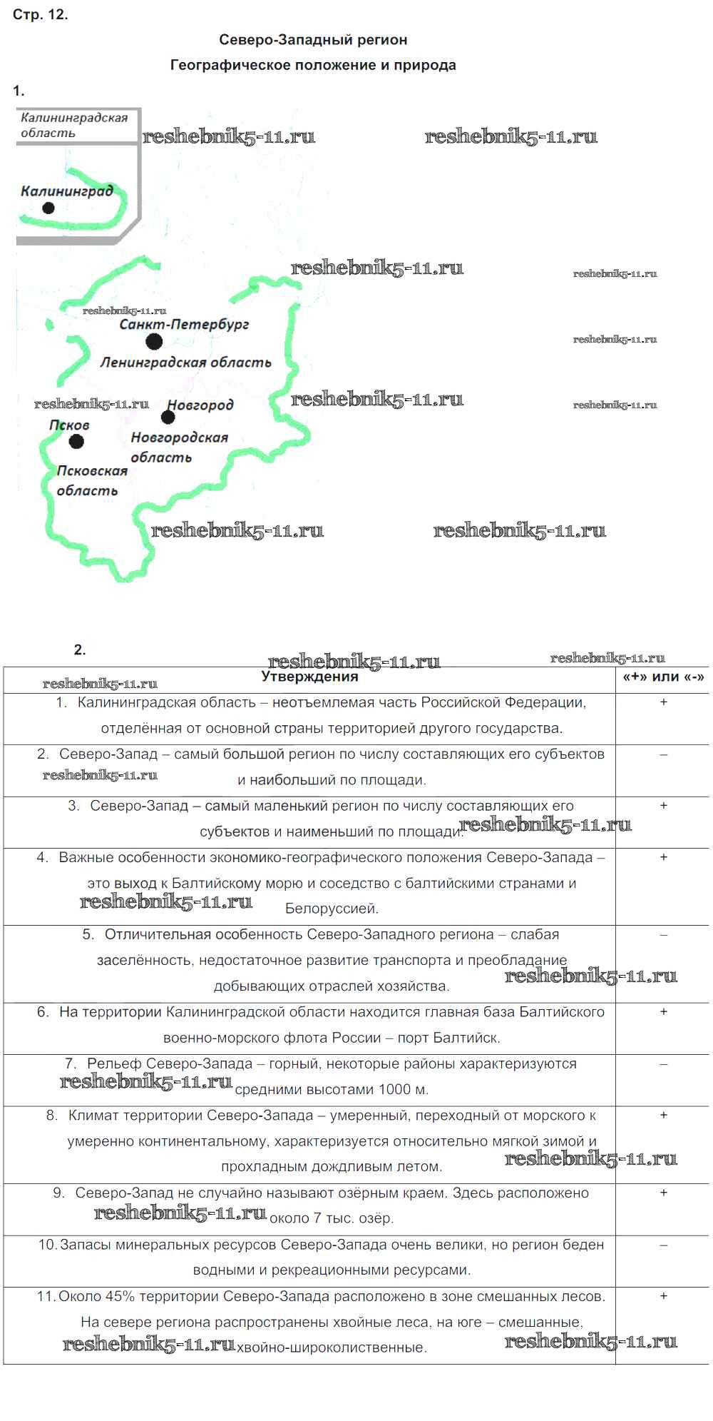 Готовая домашняя работа с ответами по Географии за 9 класс Таможняя, Толкунова Рабочая тетрадь Алгоритм успеха Вентана-граф 2017 ФГОС - Часть 2. Страницы 12