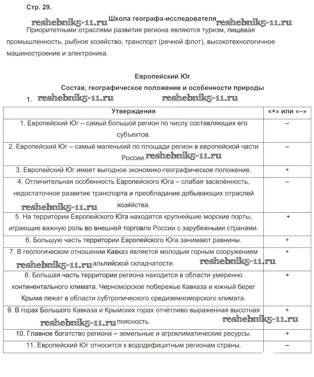 Готовая домашняя работа с ответами по Географии за 9 класс Таможняя, Толкунова Рабочая тетрадь Алгоритм успеха Вентана-граф 2017 ФГОС - Часть 2. Страницы 29