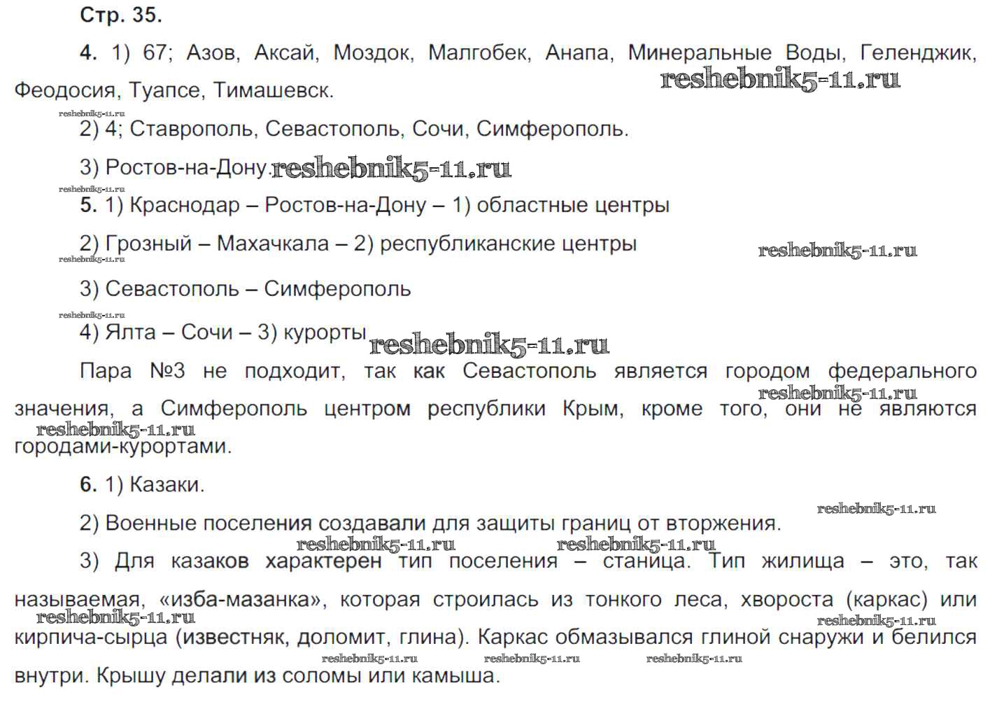 Готовая домашняя работа с ответами по Географии за 9 класс Таможняя, Толкунова Рабочая тетрадь Алгоритм успеха Вентана-граф 2017 ФГОС - Часть 2. Страницы 35