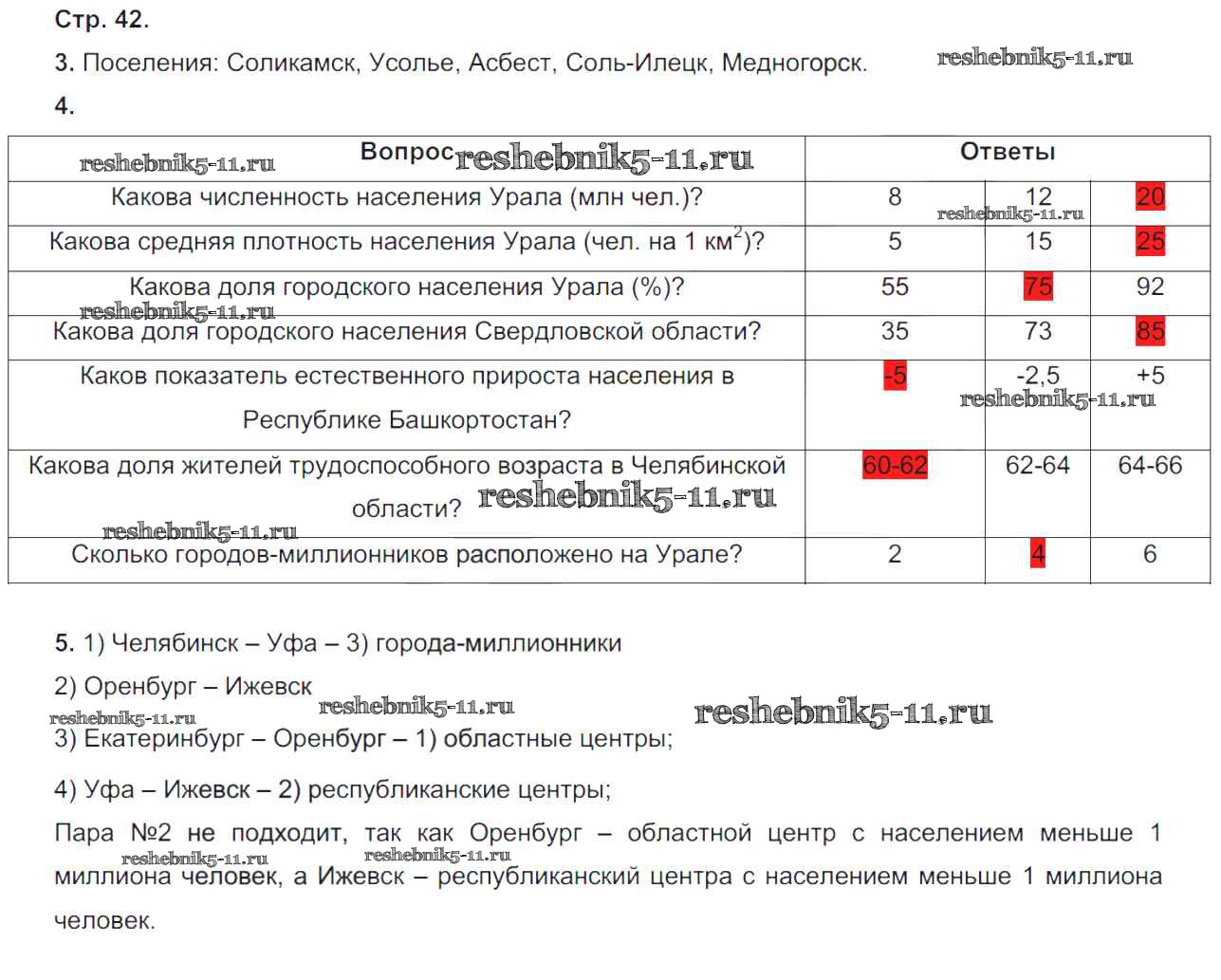 Готовая домашняя работа с ответами по Географии за 9 класс Таможняя, Толкунова Рабочая тетрадь Алгоритм успеха Вентана-граф 2017 ФГОС - Часть 2. Страницы 42