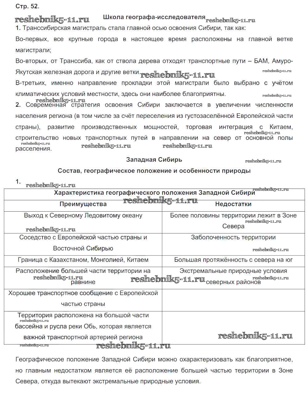 Готовая домашняя работа с ответами по Географии за 9 класс Таможняя, Толкунова Рабочая тетрадь Алгоритм успеха Вентана-граф 2017 ФГОС - Часть 2. Страницы 52