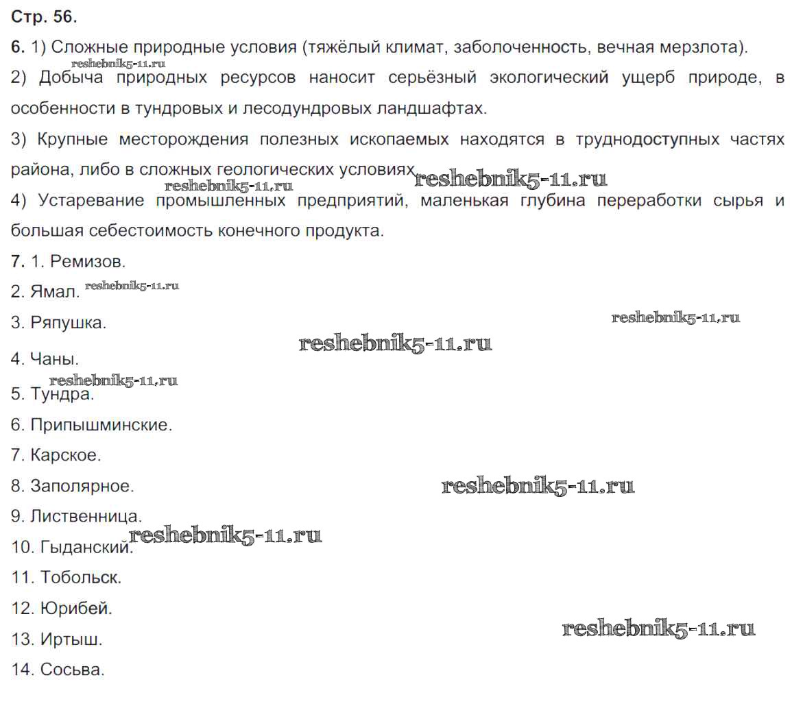 Готовая домашняя работа с ответами по Географии за 9 класс Таможняя, Толкунова Рабочая тетрадь Алгоритм успеха Вентана-граф 2017 ФГОС - Часть 2. Страницы 56