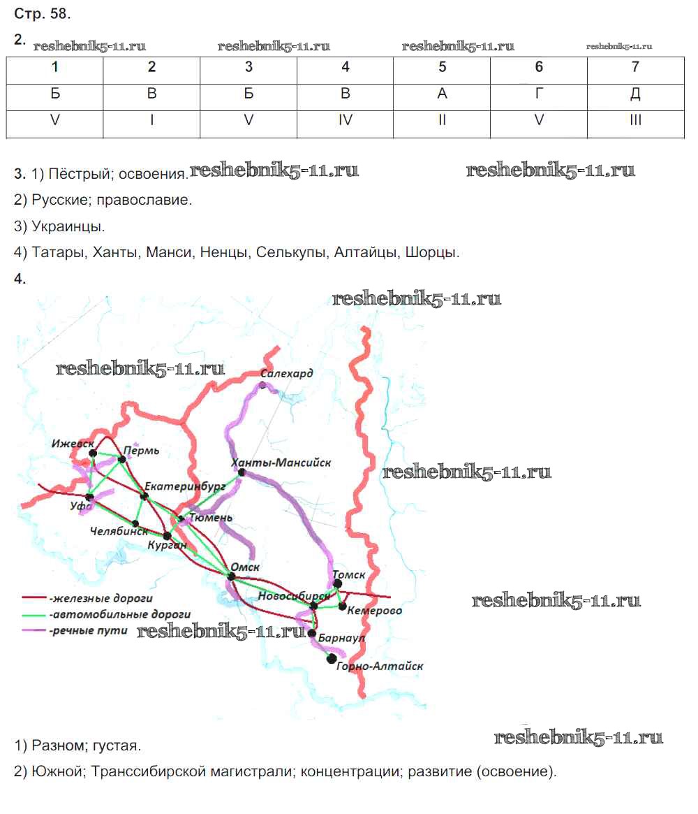 Готовая домашняя работа с ответами по Географии за 9 класс Таможняя, Толкунова Рабочая тетрадь Алгоритм успеха Вентана-граф 2017 ФГОС - Часть 2. Страницы 58
