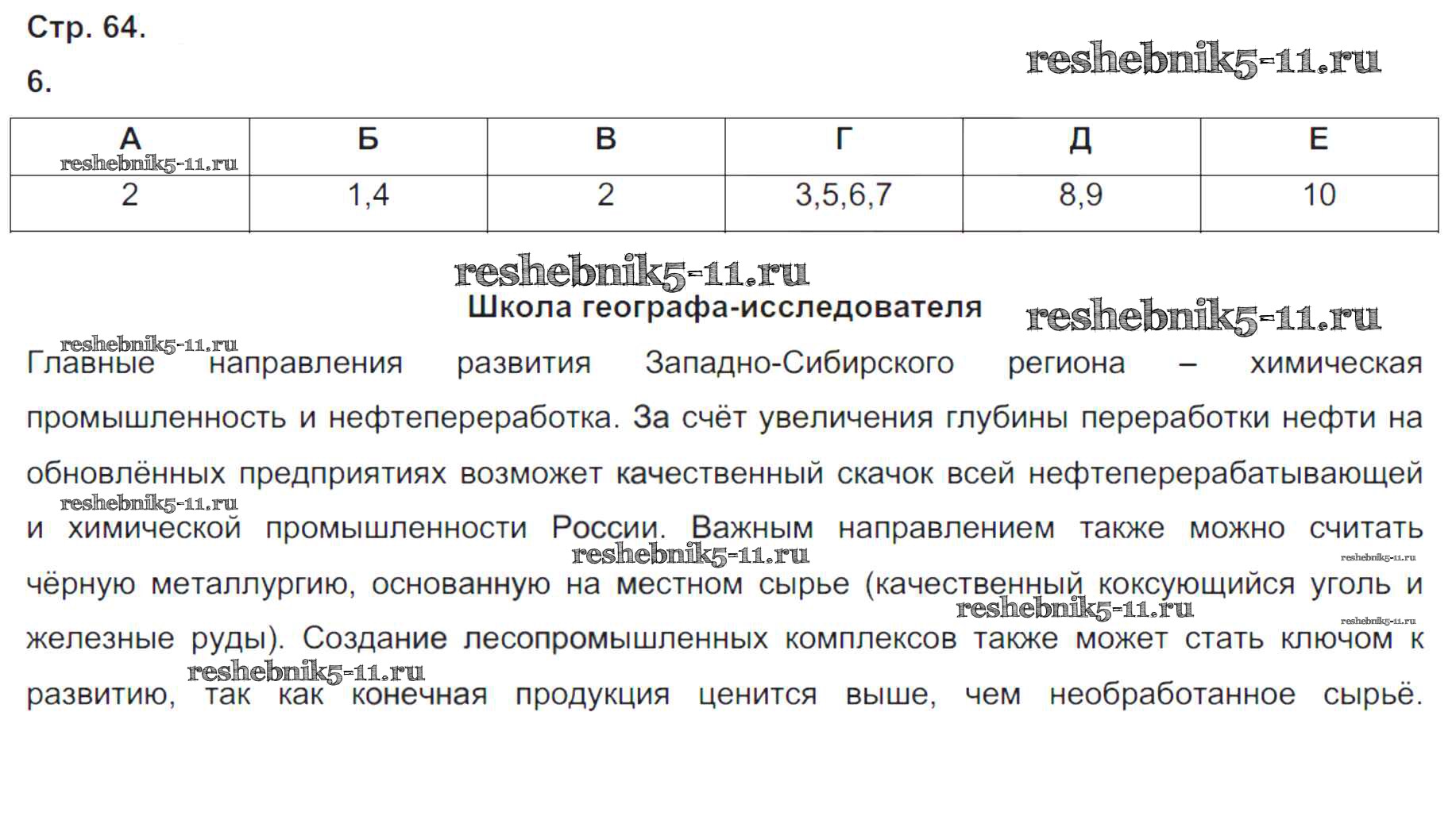Готовая домашняя работа с ответами по Географии за 9 класс Таможняя, Толкунова Рабочая тетрадь Алгоритм успеха Вентана-граф 2017 ФГОС - Часть 2. Страницы 64