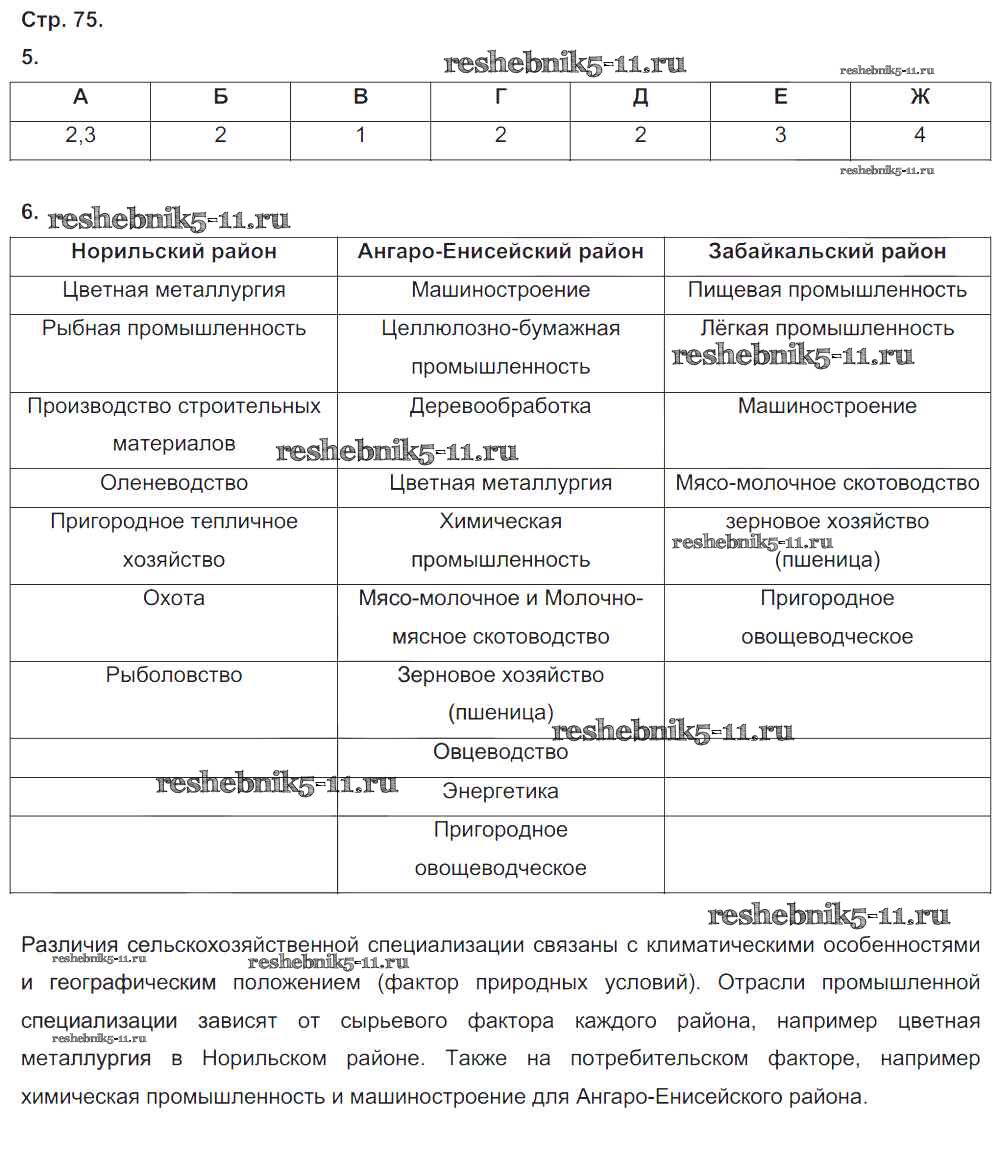 Готовая домашняя работа с ответами по Географии за 9 класс Таможняя, Толкунова Рабочая тетрадь Алгоритм успеха Вентана-граф 2017 ФГОС - Часть 2. Страницы 75