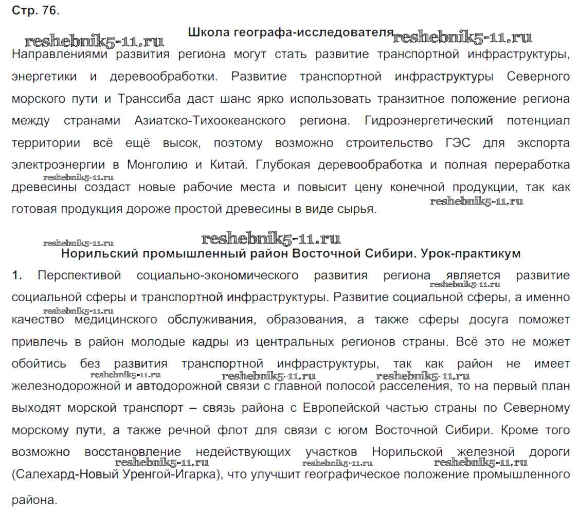 Готовая домашняя работа с ответами по Географии за 9 класс Таможняя, Толкунова Рабочая тетрадь Алгоритм успеха Вентана-граф 2017 ФГОС - Часть 2. Страницы 76