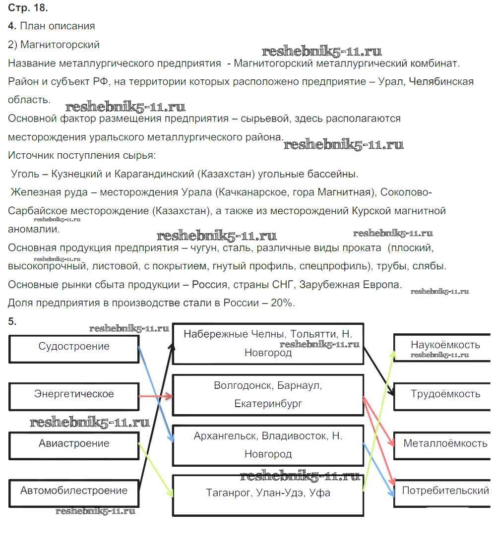 Готовая домашняя работа с ответами по Географии за 9 класс Ходова, Ольховая Тетрадь-тренажер Сферы Просвещение 2016 ФГОС - Глава 1. Хозяйство России стр.18