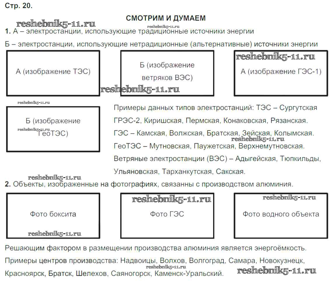 Готовая домашняя работа с ответами по Географии за 9 класс Ходова, Ольховая Тетрадь-тренажер Сферы Просвещение 2016 ФГОС - Глава 1. Хозяйство России стр.20