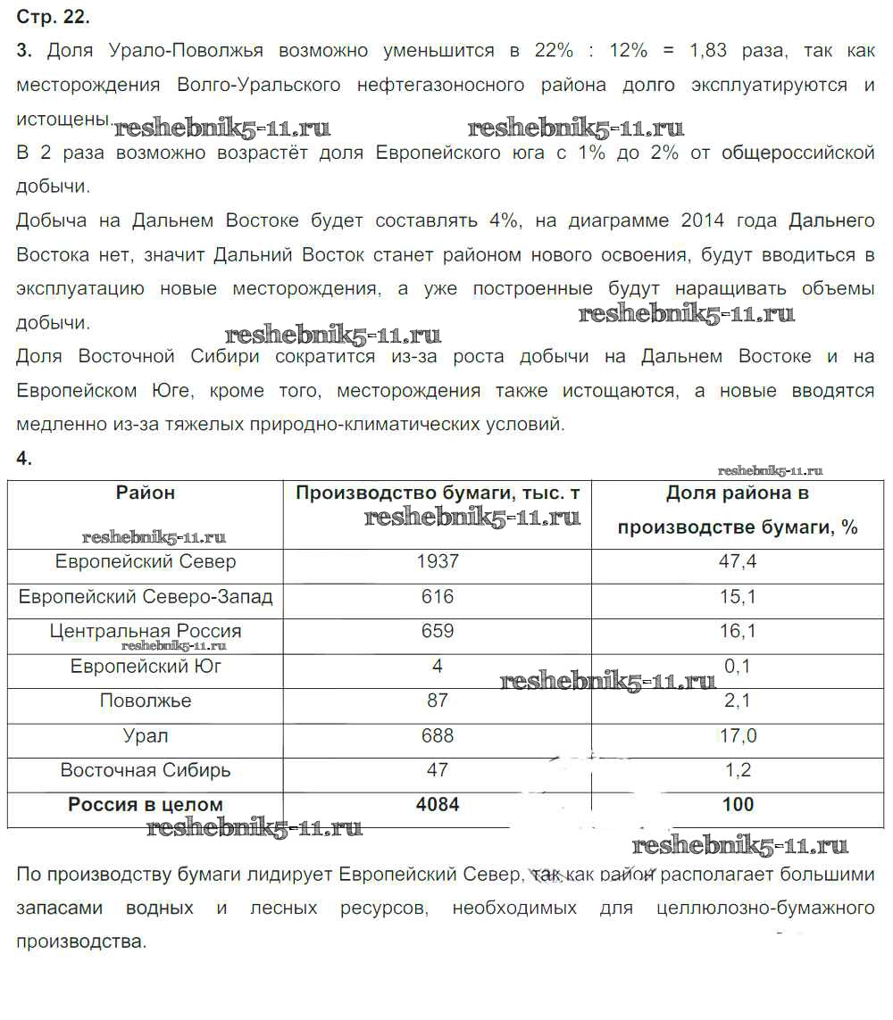 Готовая домашняя работа с ответами по Географии за 9 класс Ходова, Ольховая Тетрадь-тренажер Сферы Просвещение 2016 ФГОС - Глава 1. Хозяйство России стр.22