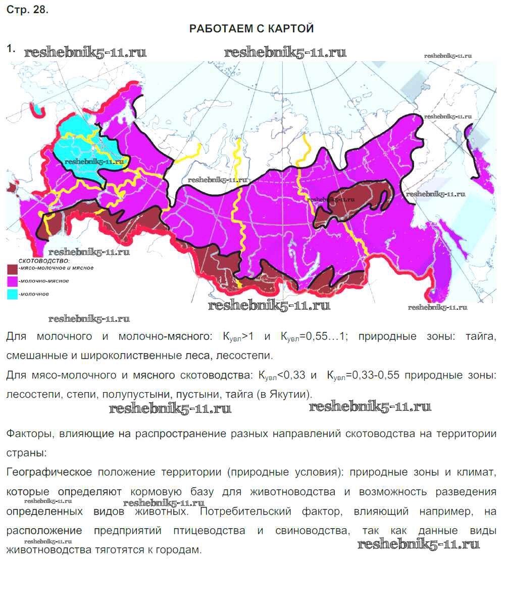 Готовая домашняя работа с ответами по Географии за 9 класс Ходова, Ольховая Тетрадь-тренажер Сферы Просвещение 2016 ФГОС - Глава 1. Хозяйство России стр.28