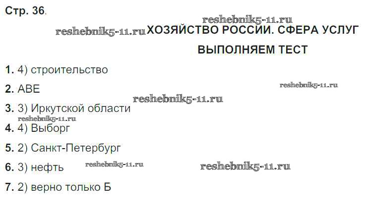 Готовая домашняя работа с ответами по Географии за 9 класс Ходова, Ольховая Тетрадь-тренажер Сферы Просвещение 2016 ФГОС - Глава 1. Хозяйство России стр.36