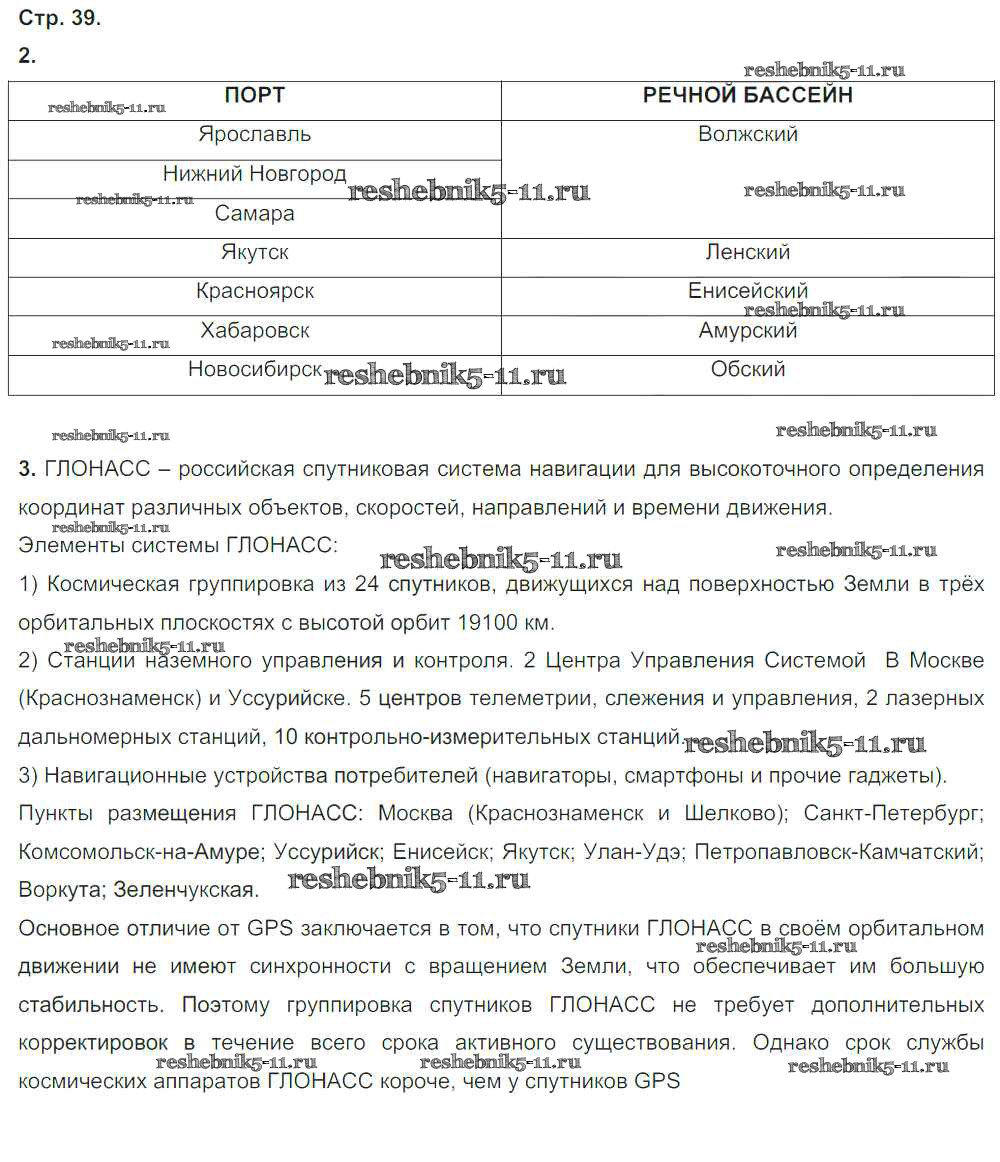 Готовая домашняя работа с ответами по Географии за 9 класс Ходова, Ольховая Тетрадь-тренажер Сферы Просвещение 2016 ФГОС - Глава 1. Хозяйство России стр.39