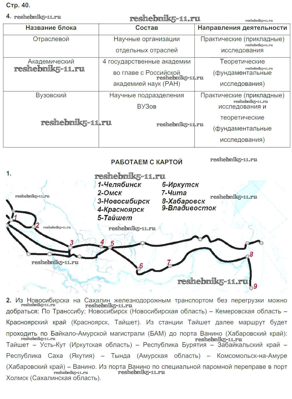 Готовая домашняя работа с ответами по Географии за 9 класс Ходова, Ольховая Тетрадь-тренажер Сферы Просвещение 2016 ФГОС - Глава 1. Хозяйство России стр.40