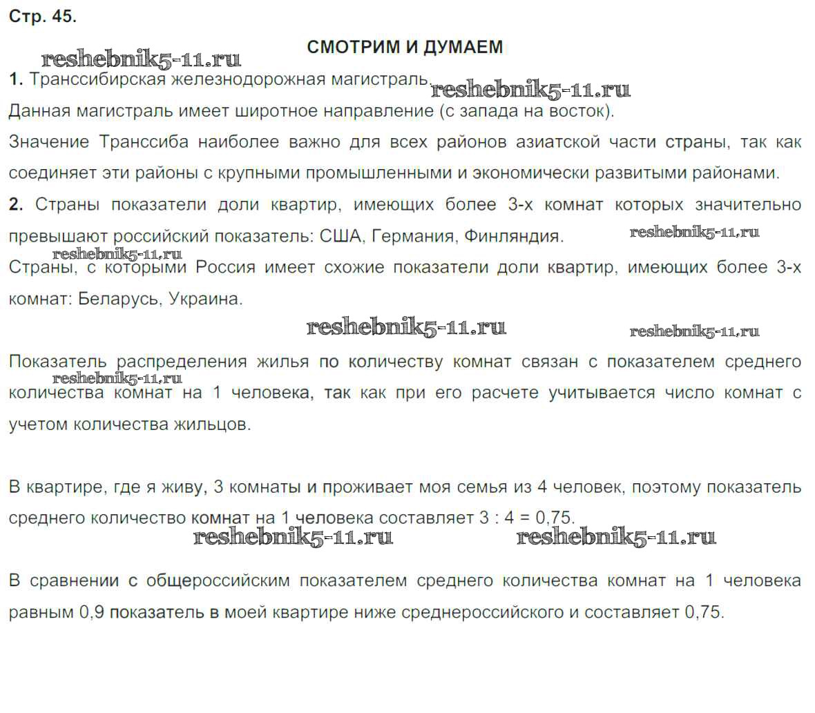 Готовая домашняя работа с ответами по Географии за 9 класс Ходова, Ольховая Тетрадь-тренажер Сферы Просвещение 2016 ФГОС - Глава 1. Хозяйство России стр.45