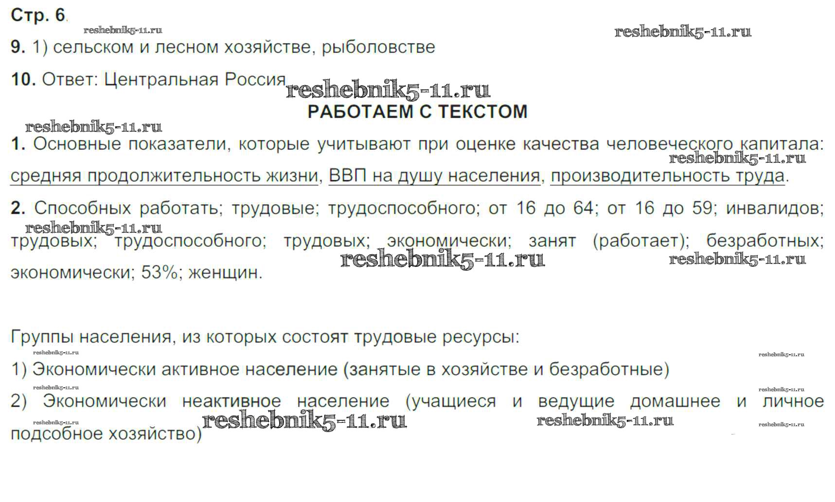 Готовая домашняя работа с ответами по Географии за 9 класс Ходова, Ольховая Тетрадь-тренажер Сферы Просвещение 2016 ФГОС - Глава 1. Хозяйство России стр.6