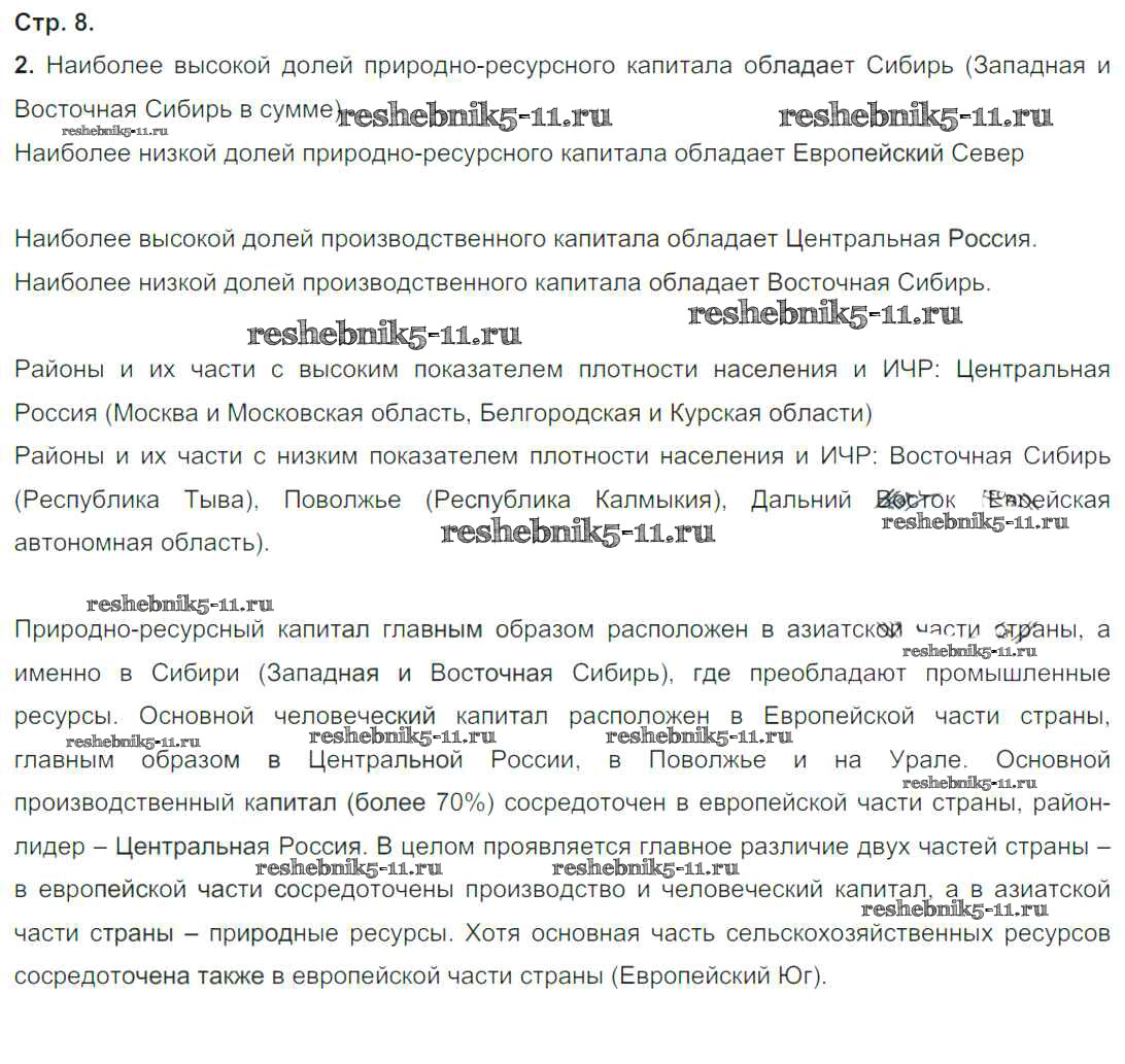 Готовая домашняя работа с ответами по Географии за 9 класс Ходова, Ольховая Тетрадь-тренажер Сферы Просвещение 2016 ФГОС - Глава 1. Хозяйство России стр.8